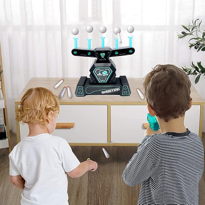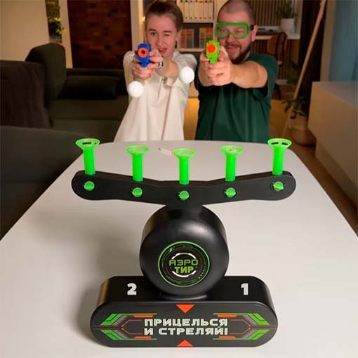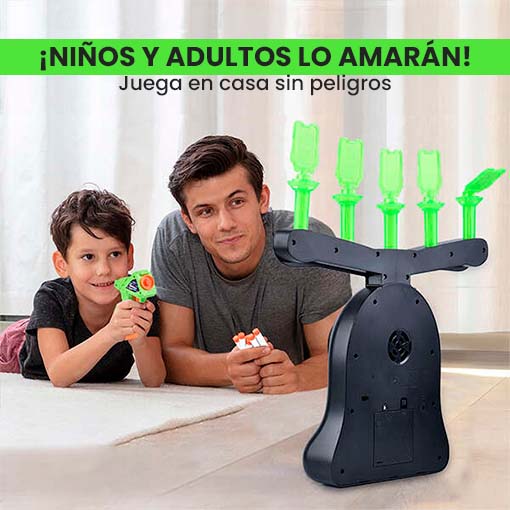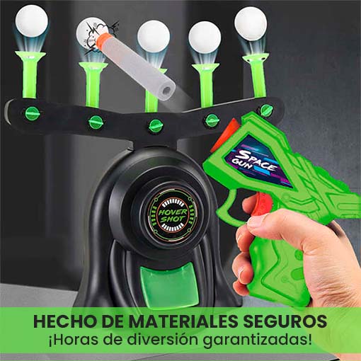 Cuenta con el método innovador para disparar con bolas de espuma de gravedad cero. ¡Apunta a un conjunto de cinco objetivos flotantes y logra derribar la mayor cantidad de bolas antes que tu contrincante!